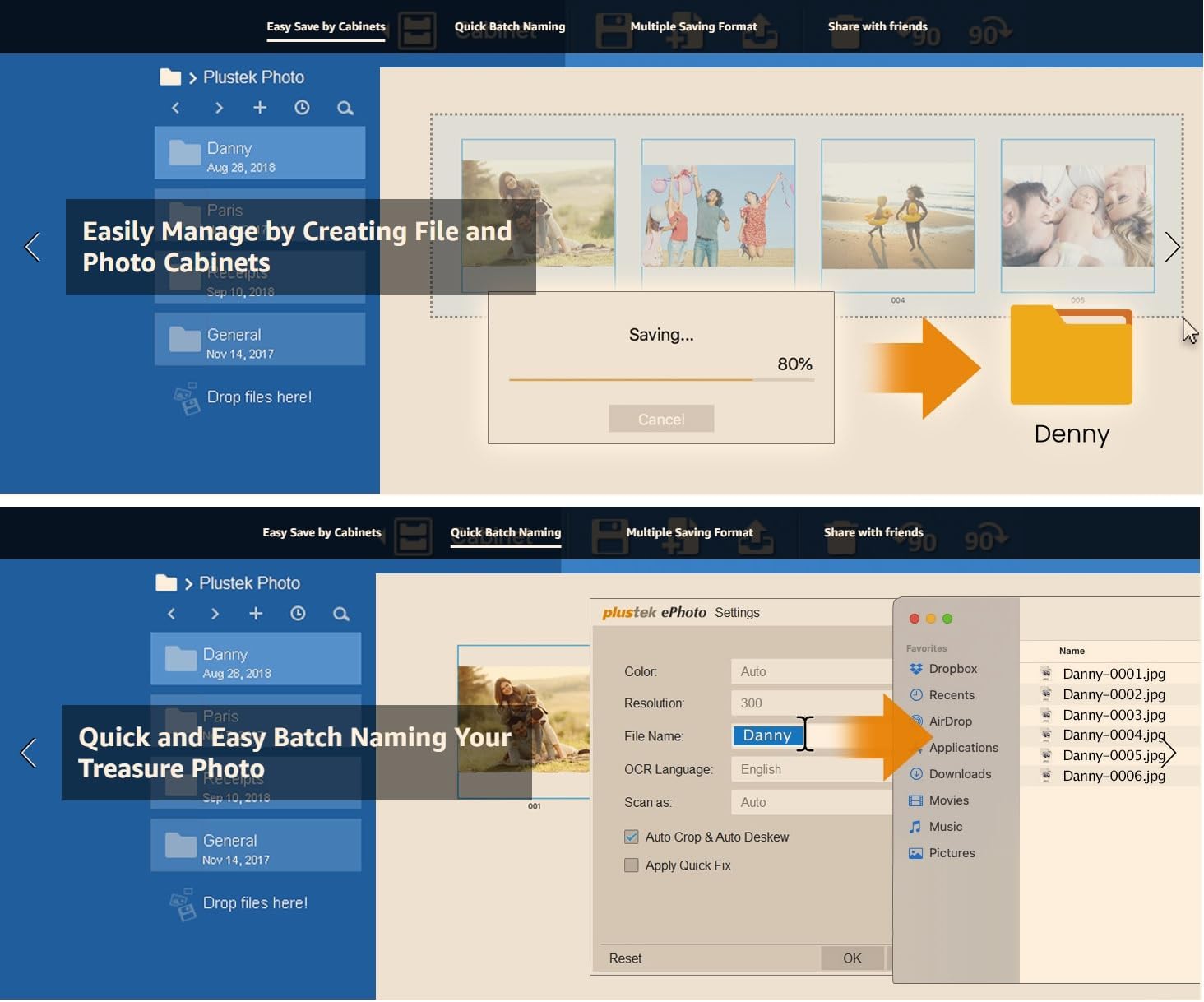 Plustek Photo Scanner ePhoto Z300, Scans 4×6 inch Photos in 2 Seconds, Auto crop and deskew with CCD Sensor, Supports Mac and PC